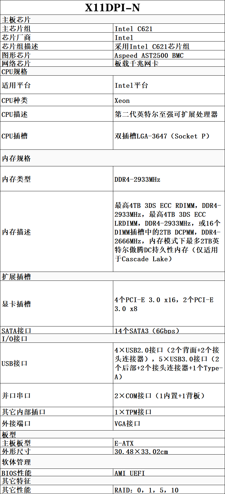 X11DPi-N支持最新英特尔至强可扩展处理器系列,从铂金、金牌、银牌到铜牌系列。
